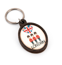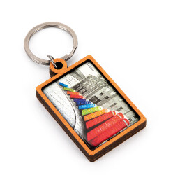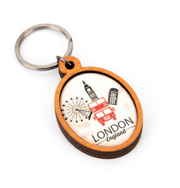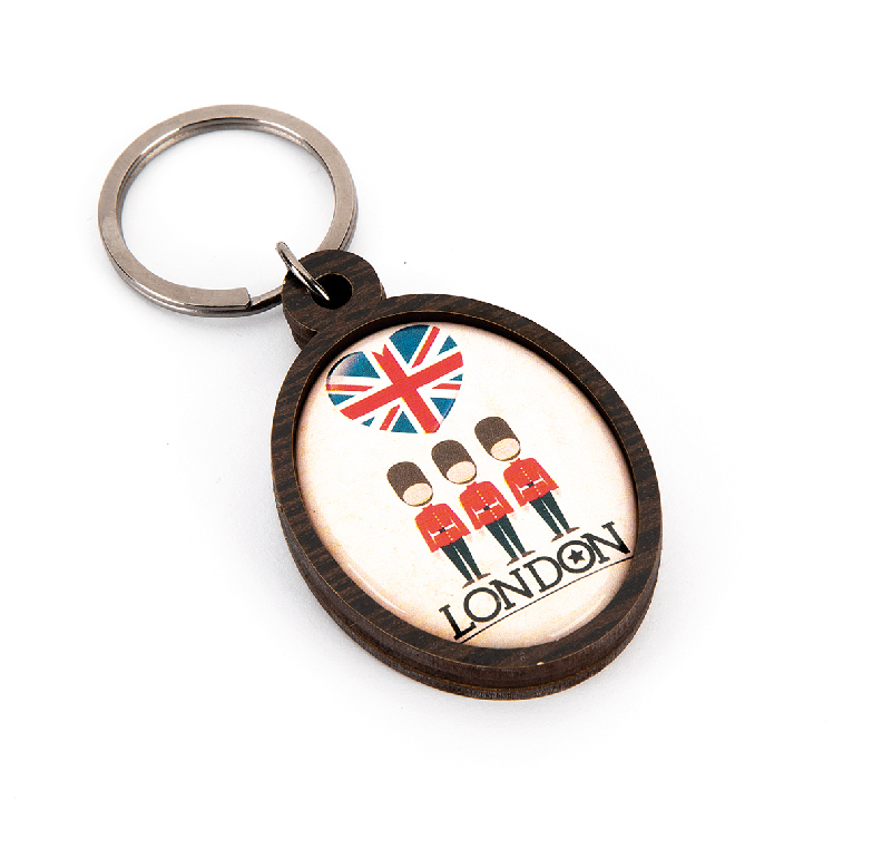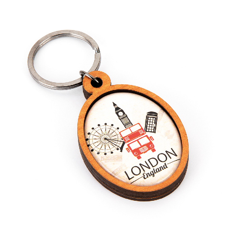 Wooden keyrings with doming sticker