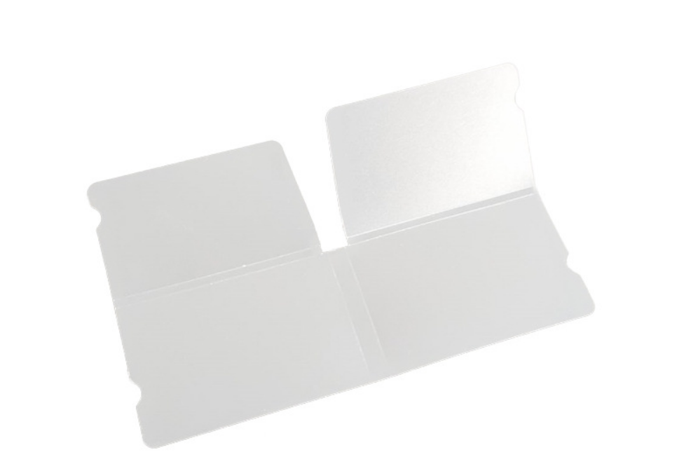 Tamaño: 194×120 mm (93×60 mm doblado). Grosor 0,3 mm.